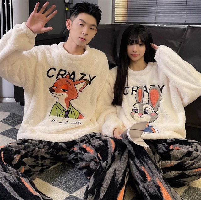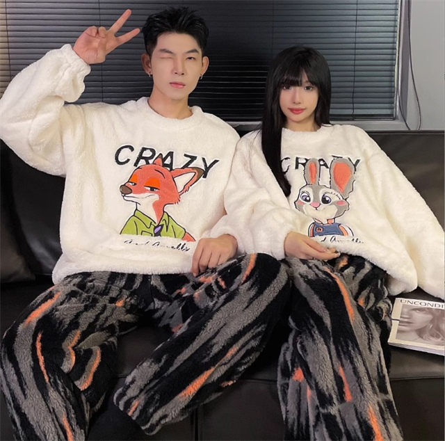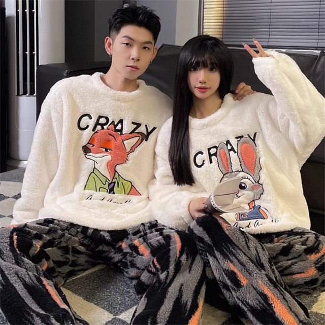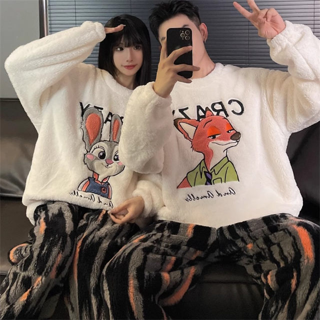 パジャマ ルームウェア モコモコ ペアルック ズートピア ジュディ ニック カップル パジャマ レデイース メンズ 寝巻き 上下セット お揃い 厚手 結婚祝い バレンタイン