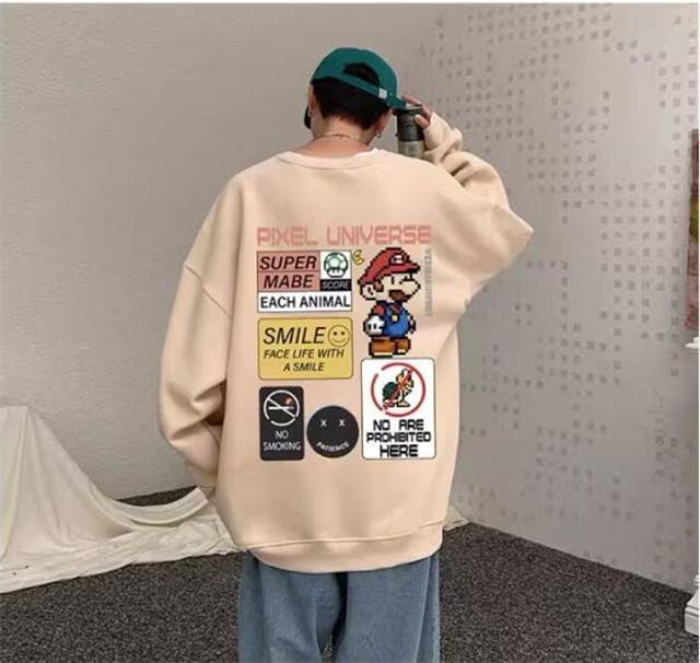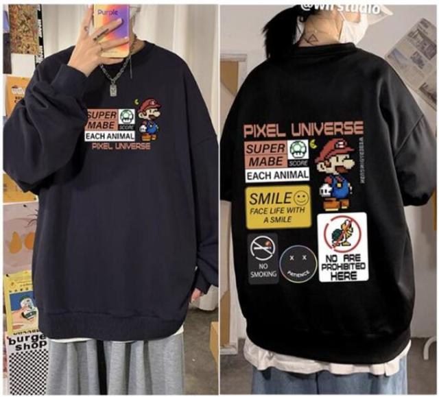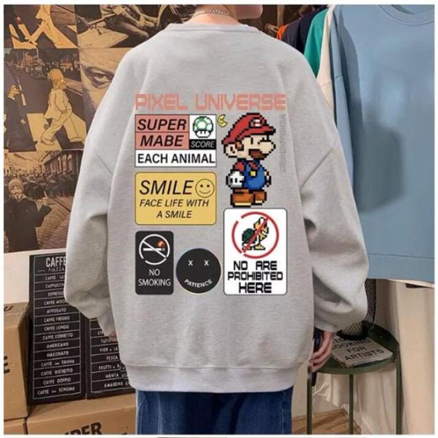 マリオ柄 メンズ レディーストレーナー 彼氏 メンズ トップス カジュアル 学生 高校生 男性用 女性用 カットソー 大きいサイズ 春秋冬 誕生日 ギフト