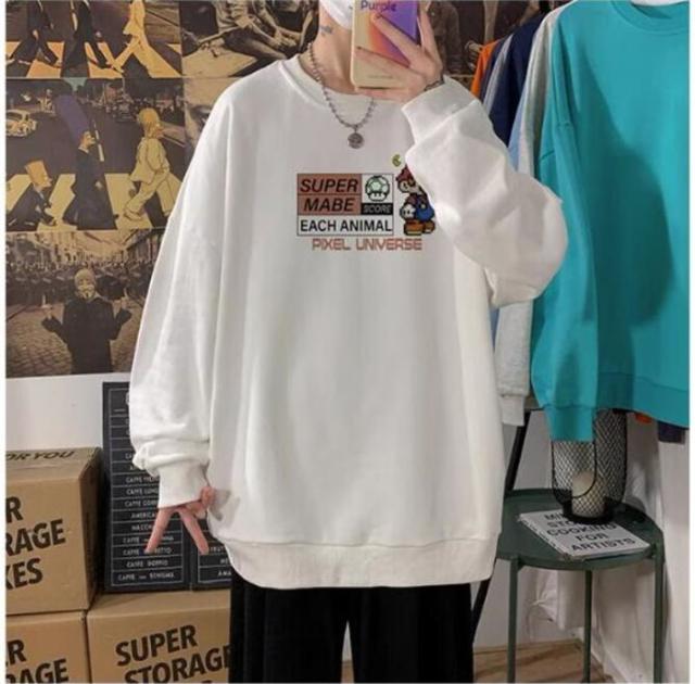 マリオ柄 メンズ トレーナー 彼氏 メンズ トップス カジュアル 学生 高校生 男性用 カットソー 大きいサイズ 春秋冬