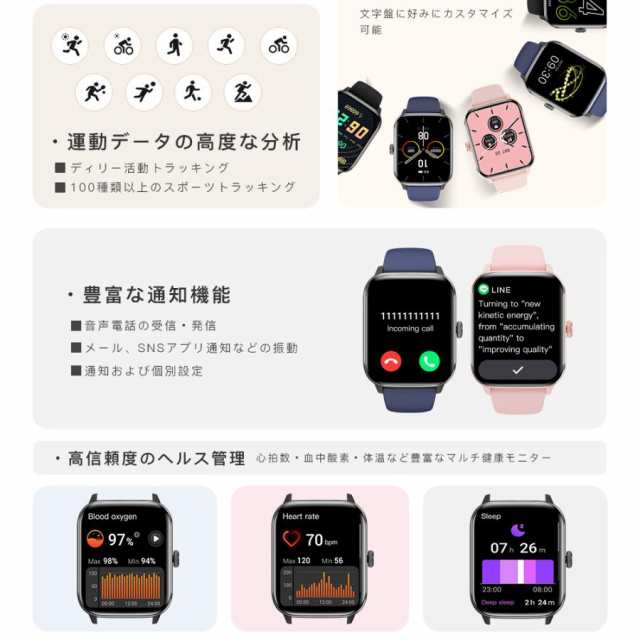 2026最新 スマートウォッチ 日本製センサー 血糖値 血中酸素 心拍数 音声通話 スマートブレスレット 血圧 1.91インチ大画面 敬老の日 ギフト