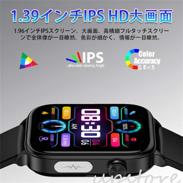 【DIY文字盤&多機能を搭載】- スマートウォッチの文字盤は固定ではありません。多くの文字盤から選べるだけではなく、お好みによって自分が好きな写真を文字盤に設定できます。 240* 280の高解像度と1.96インチのフルタッチスクリーンで、細かい文字でもはっきりと表示されます。他にも音楽コントロール、携帯を探す、腕上げ点灯、タイマー、ストップウォッチ、データ同期、女性生理管理など便利な機能を備えているので、男性でも女性でも使いやすいです!!生活、仕事の効率をさらに上げ、日常生活もより便利にしてくれます。