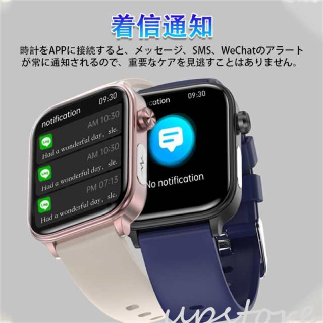 【便利な通知機能】 スマートウォッチをスマホに接続した後、着信をリマインダー、重要なSMSメッセージを受信して読めますように振動します。満員電車の中、運動中や打ち合わせ中などスマホを取り出せない状況でも、大切なメッセージや着信を見逃しません。(Line、Twitter、Facebook(Meta)、Instagramなどをサポートします。)お休みモードも設定でき、寝る前に「振動」「メッセージ通知」をオフすることができます。(ご注意:返信の機能がいただけません)
