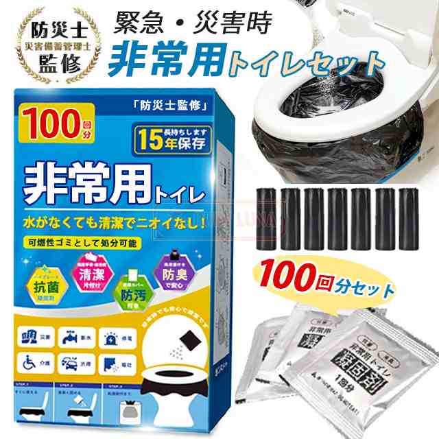 送料無料 夏新作 簡易トイレ 100回分 防災士監修 防災グッズ 非常用 凝固剤 携帯トイレ コンパクト 災害用 消臭抗菌 ポータブルトイレ