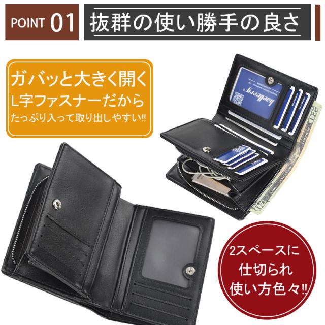 L字ファスナーでガバッと開く大口の小銭入れは、仕切りで2スペースに分かれており使い勝手抜群。
