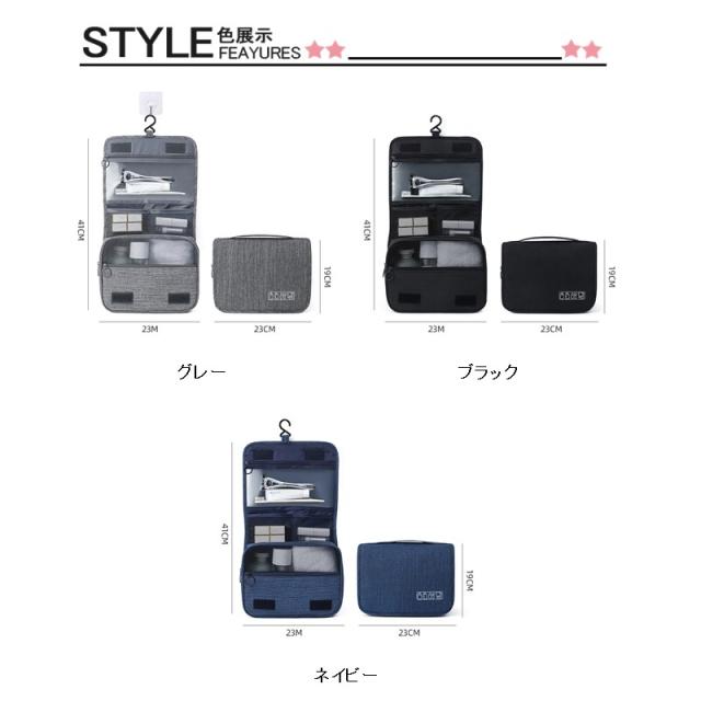 トラベルポーチ 吊り下げ フック付き 化粧ポーチ 旅行 ポーチ 出張 ビジネス メンズ レディース 旅行用ポーチ メイク コスメ 仕切り 防水 収納