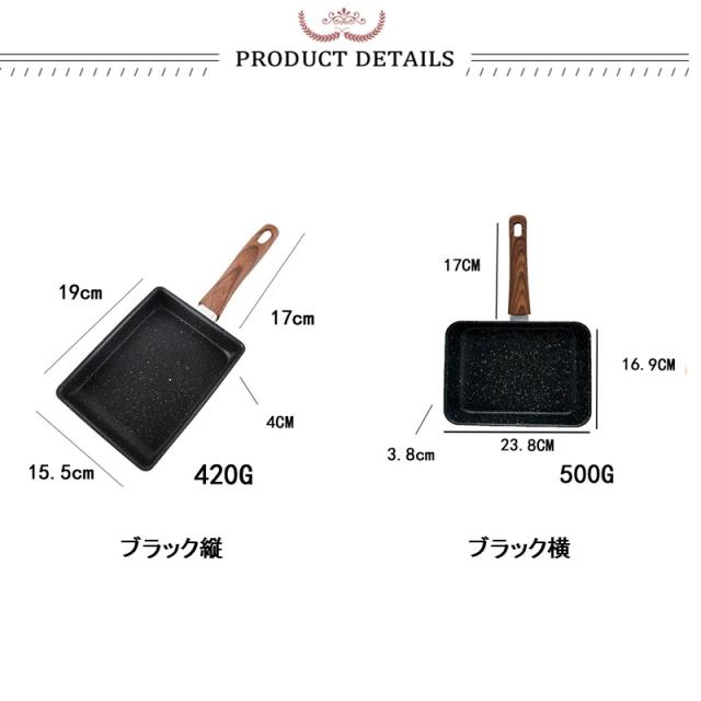 卵焼き フライパン 横 縦 目玉焼きフライパン IH ガス火対応 お弁当用卵焼き器 マーブルコート 角玉子焼 調理器具 手入れ簡単 軽い 単品販売