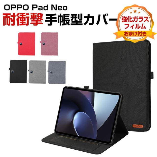 オッポ Oppo Pad Neo 11.4インチ ケース カバー タブレットケース おしゃれ CASE オートスリープ スタンド機能 ブック型 カッコいい 実用 便利性の高い 人気 手帳型カバー PUレザー ブックカバー 強化ガラスフィルム おまけ付き