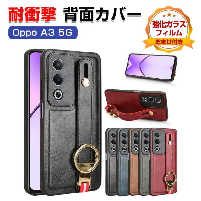 オッポ OPPO A3 5G CPH2639 ケース カバー TPU&PUレザー素材 レザー調 四隅耐衝撃 落下防止 指紋防止 軽量薄型 手触り抜群 保護ケース ストラップ付き 肩掛け レディース 便利 実用 人気 おすすめ おしゃれ かわいい 背面カバー 強化ガラスフィルム おまけ付き