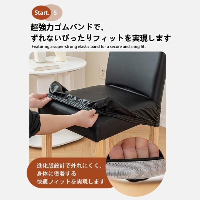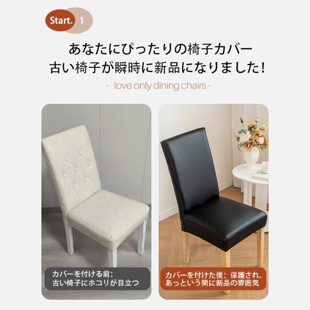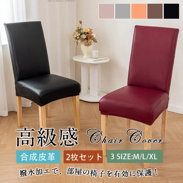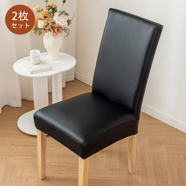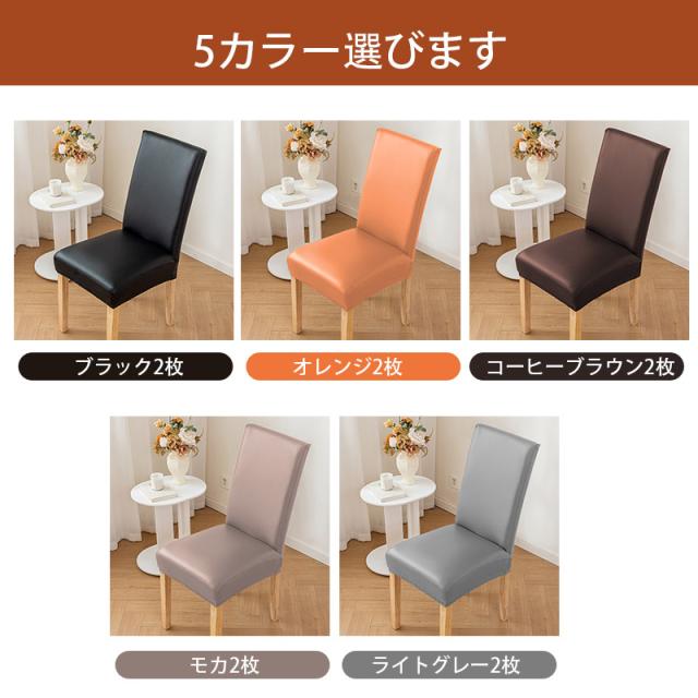 2枚セット 無地のPUレザー椅子カバー イスカバー ダイニング椅子カバー フィット チェアカバー 座面 伸縮素材 超弾力 防水 取り外し簡単