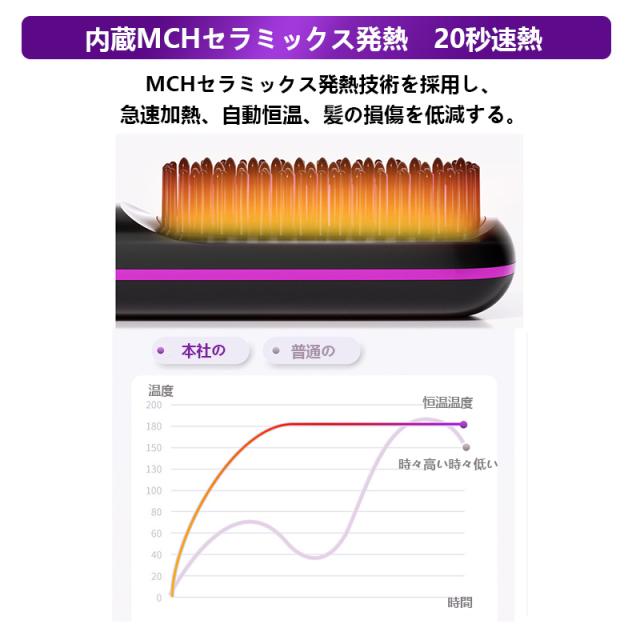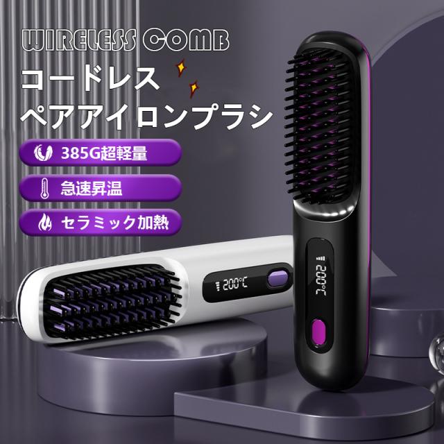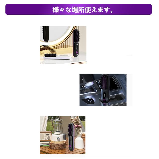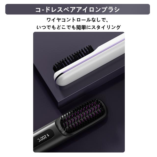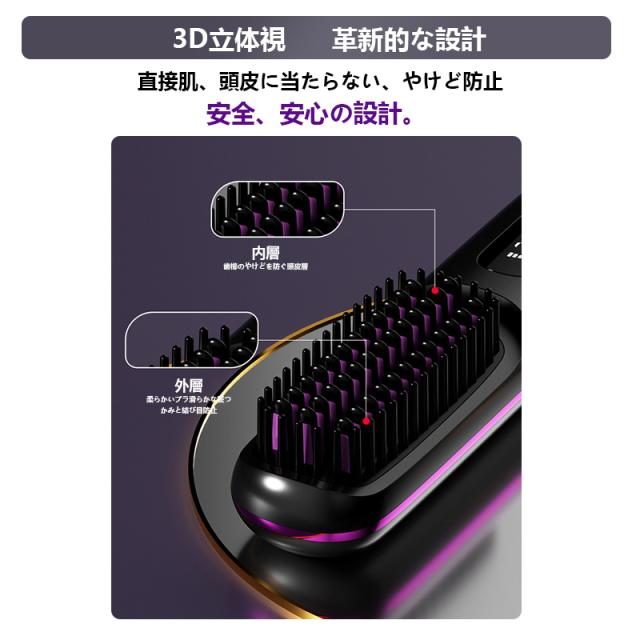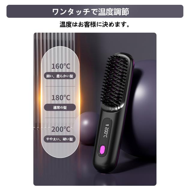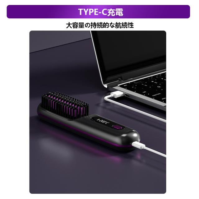 ヘアアイロン ストレートアイロン ヘアアイロンブラシ コードレス ヒートブラシ 携帯用 ヘアアイロン ブラシ 男女兼用 充電式 温度表示 コ-ドレス