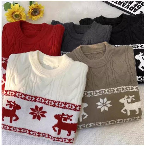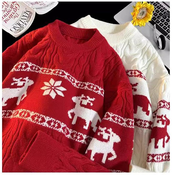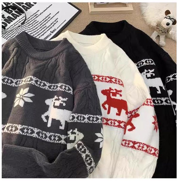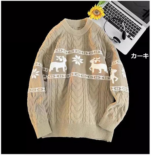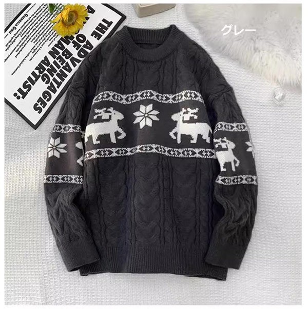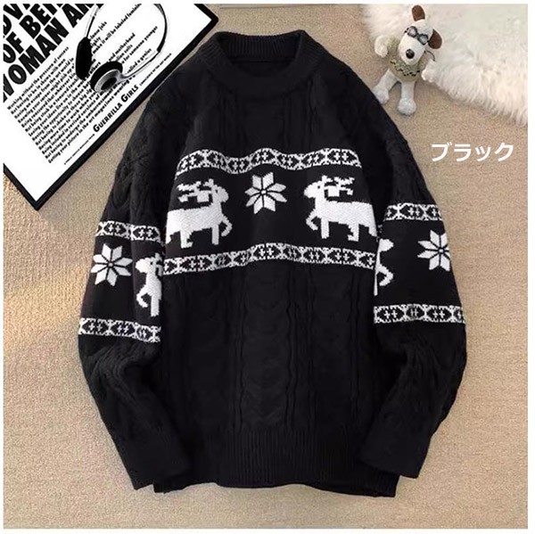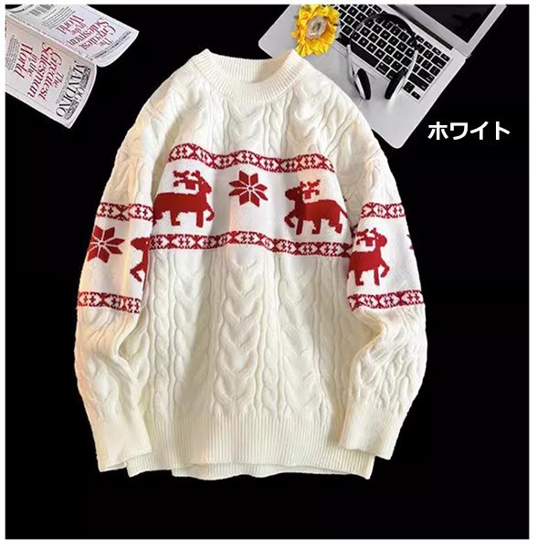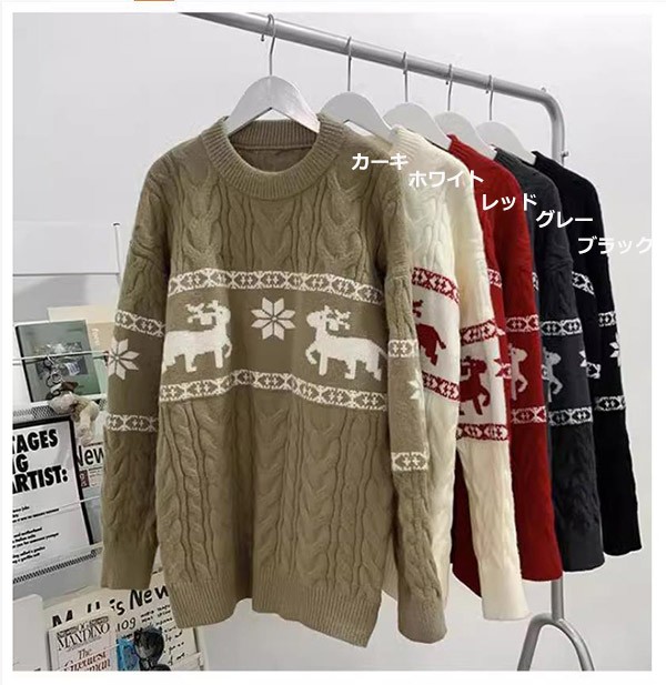 セーター ニットセーター ヘラジカ ニット 男女兼用 メンズ クリスマス Xmas Christmas 長袖 トップス オーバーセーター 柔らかい ふわふわ ゆったり 秋冬 おしゃれ カジュアル 可愛い 暖かい ペアルック黒 白 赤 de021m5
