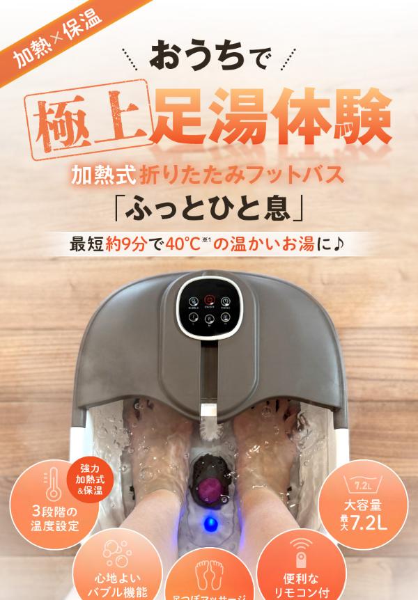 折りたたみ式フットバス ふっとひと息 フットバス リラックス マッサージ用品 癒し 足湯 足湯器 冷え むくみ 足元 あったか 加熱 保温 足つぼ 足裏 マッサージ 足つぼマッサージ 母の日 父の日 敬老の日 誕生日 プレゼント ギフト 贈り物 お祝い 贈答品