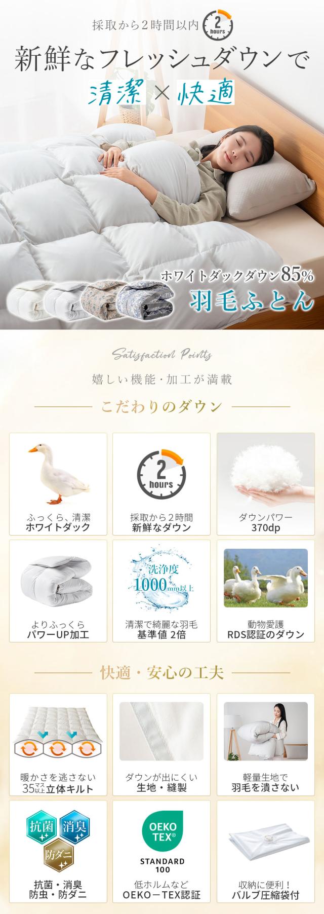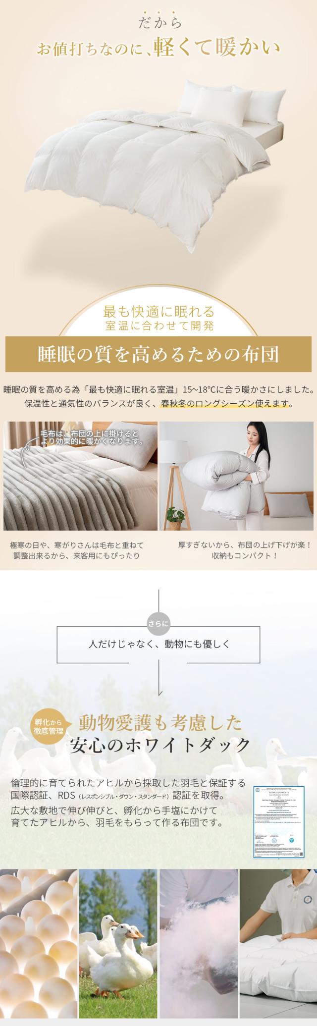 羽毛布団 セミダブル 掛け布団 羽毛ふとん 冬用 ホワイトダックダウン 掛布団 布団 羽毛掛け布団 オールシーズン 羽根布団 抗菌 消臭 防ダニ加工 ポイント消化 送料無料 AIFY アイフィー