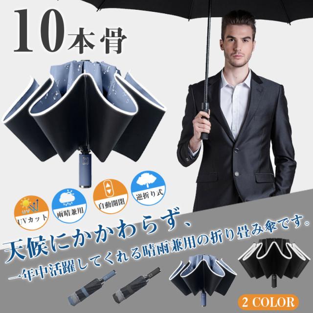 折りたたみ傘 日傘 雨傘 晴雨兼用 折り畳み傘 傘 逆折り ワンタッチ 収納ケース付き 自動開閉 撥水加工 10本骨 ビジネス メンズ傘 梅雨対策