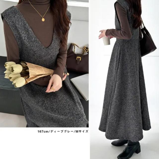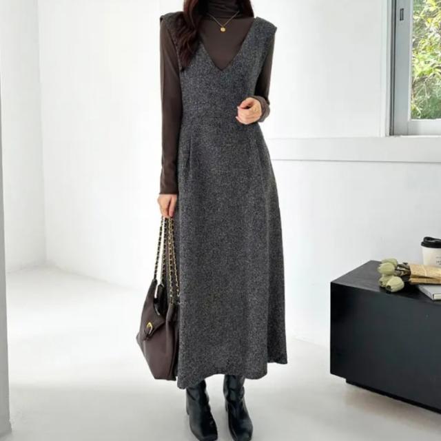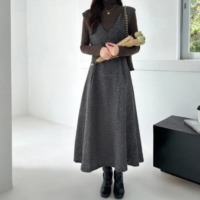 ロングワンピース ノースリーブ キャミワンピース Vネック 秋冬 レディース服 厚手 シンプル