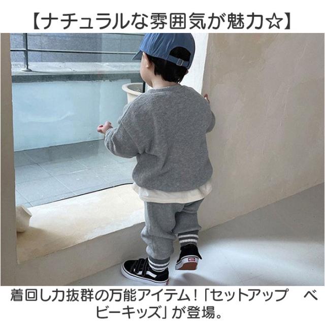 | 商品説明 | 【ナチュラルな雰囲気が魅力☆】 ・着回し力抜群の万能アイテム!「セットアップ ベビーキッズ」が登場。 【ふんわり優しい着心地を実現】 ・お子様のお肌に優しい、コットン素材を採用。ソフトでいてサラっと気持ちいい肌触りが魅力。 【ストレッチ生地でのびのびラクチン】 ・元気な動きを邪魔しない、伸縮性のある生地。そのままお昼寝しても大丈夫なラクチンさ♪ 【長く使える、薄手の生地タイプ】 ・春秋冬OKな、薄手生地。すぐにサイズアウトしてしまうから、たくさん着られるのが嬉しい☆ 【シンプルだから無限の着回し力!】 ・セットアップできるのはもちろん、上下別の単品使いをするのもGOOD!ヘビロテ確定の1着。 【大きめのサイズ展開が嬉しい☆】 ・ベビーからキッズまでOKの豊富なサイズバラエティー。兄弟姉妹でおそろいにできる☆ 【お祝いやギフトにもオススメ】 ・女の子も男の子も似合うアイテムなので、贈り物にもぴったり!きっと喜ばれる♪ |