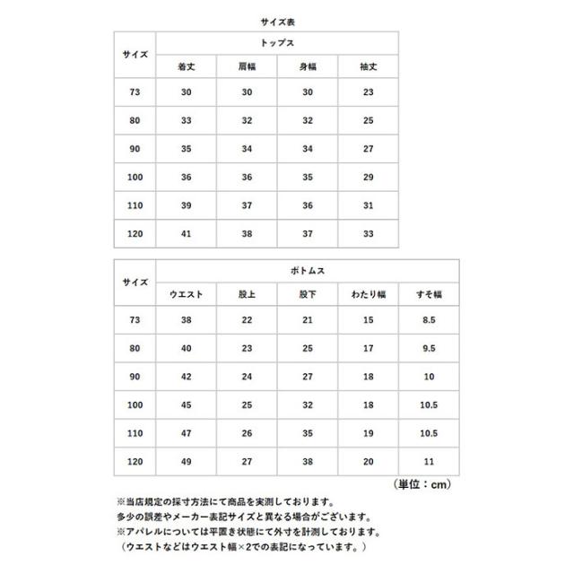 | サイズ | [ベビー・キッズ] ・73cm ・80cm ・90cm ・100cm ・110cm ・120cm ※サイズについて詳細は、商品画像の中にあるサイズ表をご覧くださいませ。 |