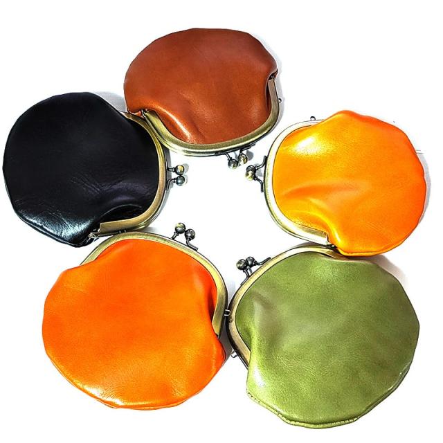 丸型で可愛らしい形の栃木レザーのがま口財布です。