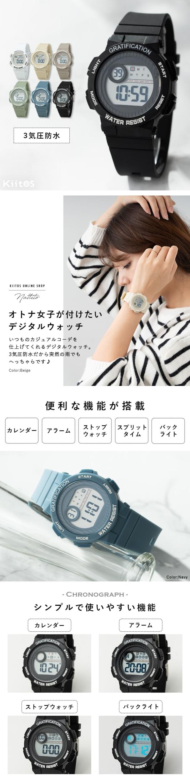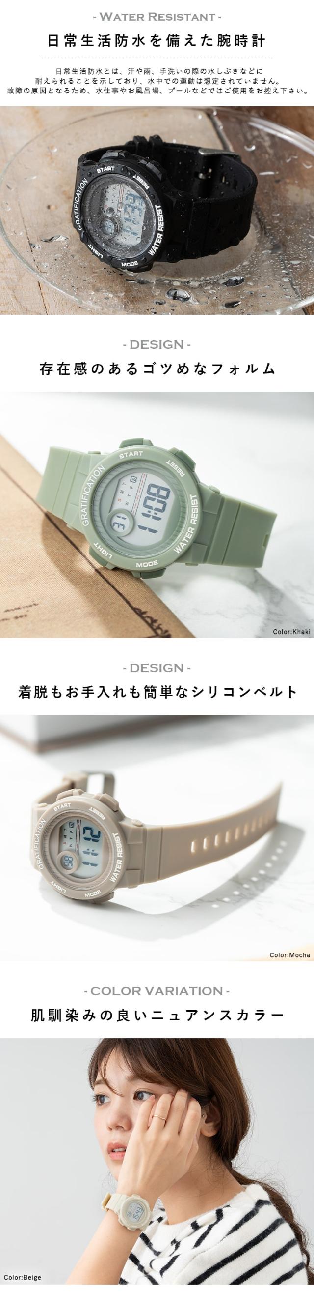 腕時計 レディース デジタル 3気圧防水 シンプル ウォッチ かわいい おしゃれ シリコン ラバー 見やすい 20代 30代 40代 仕事 通学 カレンダー ストップウォッチ アラーム バックライト プレゼント ギフト 1年間のメーカー保証付き