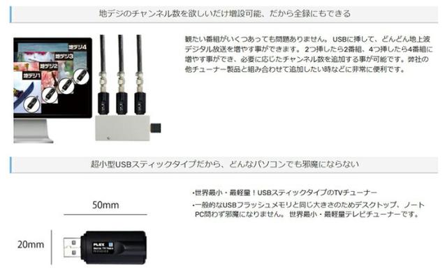 ・一般的なUSBフラッシュメモリと同じ大きさのためデスクトップ、ノートPC問わず邪魔になりません。 超小型テレビチューナーです。