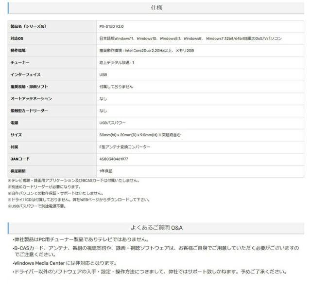 PLEX USB接続ドングル型 地上デジタル TVチューナー PX-S1UD V2.0
