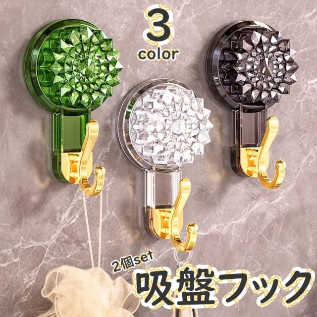 吸盤フック 2個セット フック 回転 真空 吸引 収納 壁掛け 壁掛け収納 キッチン 防水 浴室 お風呂場 洗面台 ゴージャス