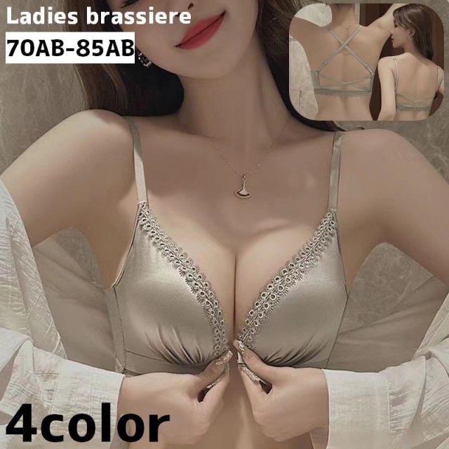 ブラジャー 3/4カップ フロントホック レディース 女性 単品 インナー 下着 バッククロスレース 単色 無地