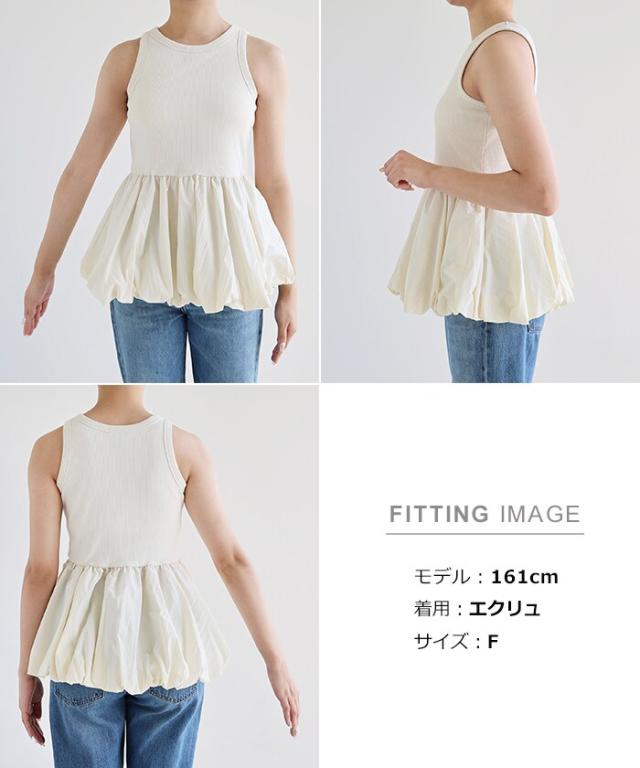 テレコリブ カップ付き ペプラム バルーン トップス