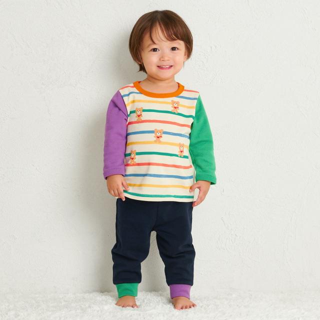 ミキハウス ホットビスケッツのミニ裏毛素材の長袖パジャマ。