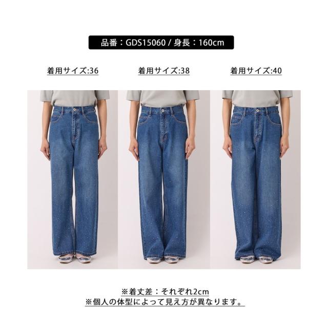 ・きらめくビジューを散りばめたゴージャスなデニムパンツ。