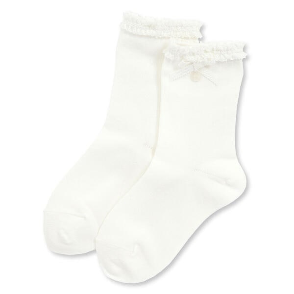 タルティーヌ エ ショコラ(Tartine et Chocolat)/【日本製】【お揃い】コットンシルケットレースリボンソックス(13~21cm)