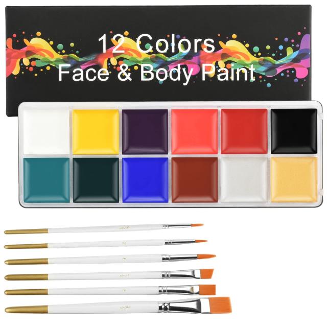 Chisafly フェイスペイント 12色セット ボディペイント 絵の具 マタニティペイント 顔ペイント 白塗り 安全 無毒 エコ メイク ブラシ6本