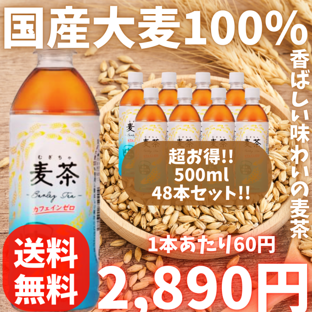 【絶対飲んで欲しい!国産大麦100% 本当に美味しい麦茶!】 即納 スマプレ会員 送料無料【 1本60円 最高峰麦茶 ラベルレス 500ml 48本 】 国産 大麦 美味しい 麦茶