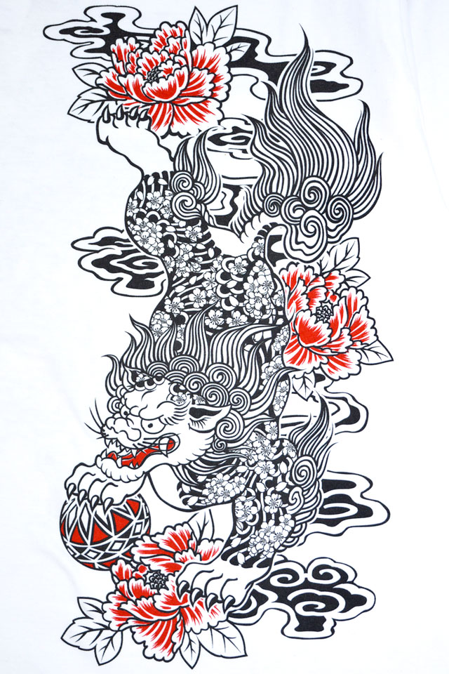 日本に伝わる神獣の唐獅子の体には刺青が彫り込まれており、迫力満点のデザインに仕上がりました。