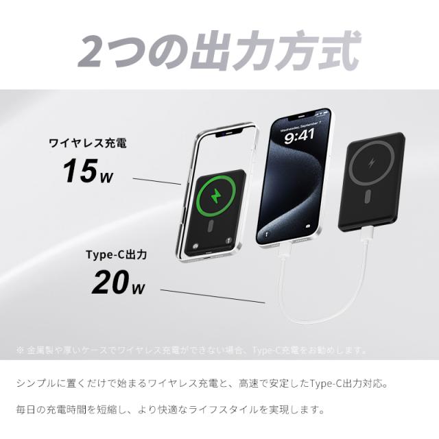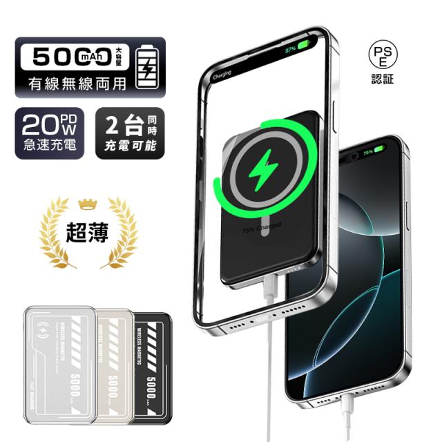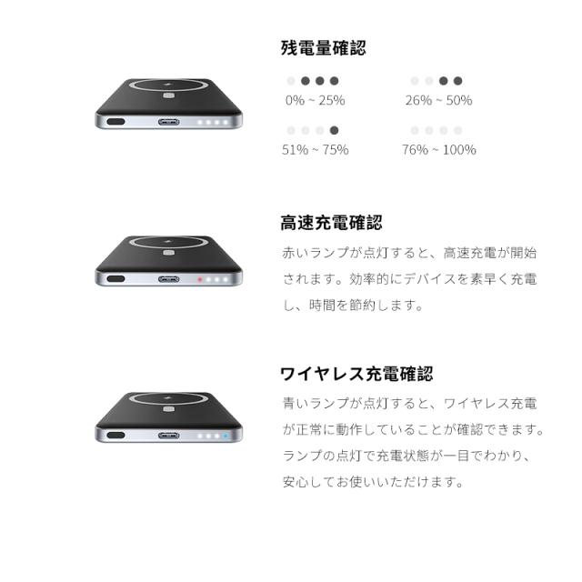 モバイルバッテリー 15Wワイヤレス充電器 MagSafe対応 iPhone16充電 大容量 防災電源 有線無線両用 2台同時充電 Qi機種対応 軽量 小型 コンパクト 急速充電 便利グッズ 旅行 出張 PSE認証済 iPhone17/iPhoneAir対応 【PL保険加入済み製品・安心】