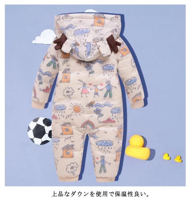 カバーオール ベビー ジャンプスーツ ジャンプスーツ スノーウエア 男の子 軽量 ロンパース つなぎ 防寒物 女の子 ダウンアウター ベビー服 暖かい 雪遊び 冬物 可愛い 誕生日 出産祝い プレゼント 80/90/100