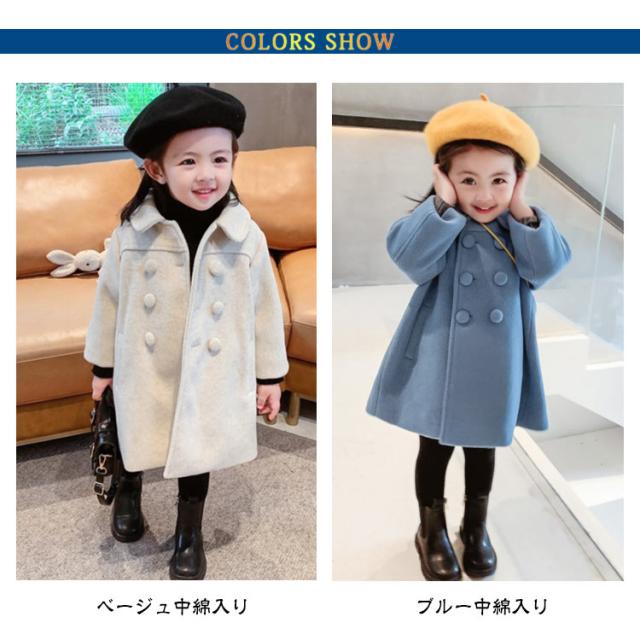 女の子 小学校 キッズ 90〜140cm 中綿入り 上着 ベージュ ブルー コート 水色 ピーコート おしゃれ ジャケット キッズ服 秋 子供服 入園式 卒園式 冬 フォーマル ジュニア 保育園 入園準備 入学式 アウター 入学準備 子ども クリスマス