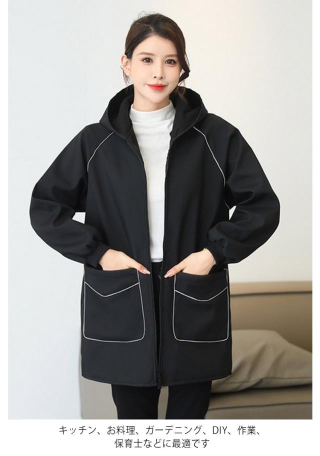 あったか 裏起毛 暖かい かっぽう着 ゆったり エプロン ジップアップ 裏フリース パーカー フード付き 長袖 前開き 防水 無地 撥水 着る毛布 暖かい 羽織り オシャレ レディース 送料無料 母の日 敬老の日 プレゼント