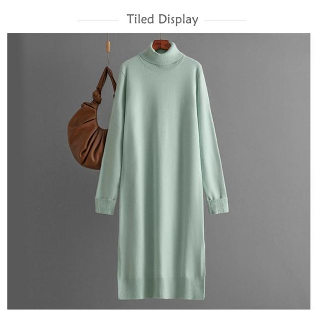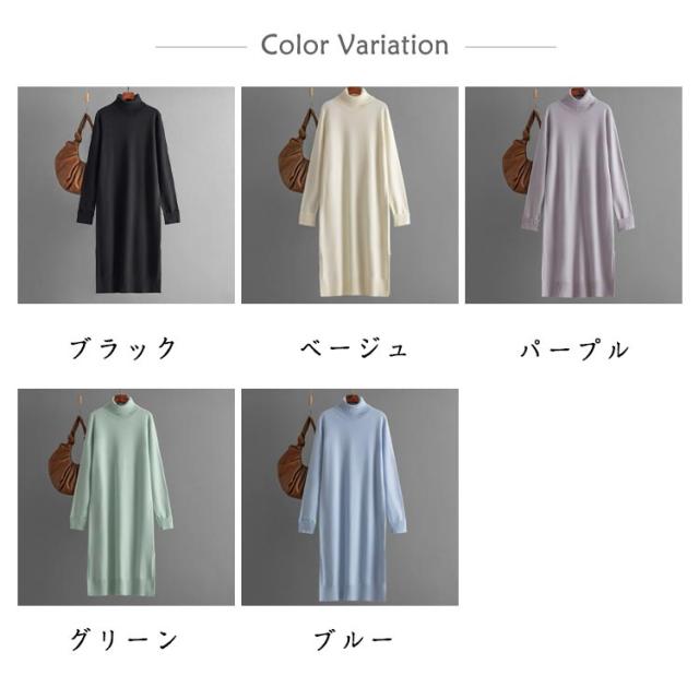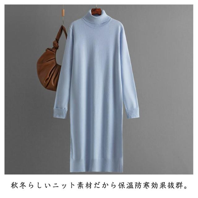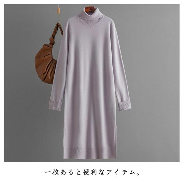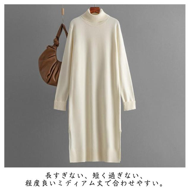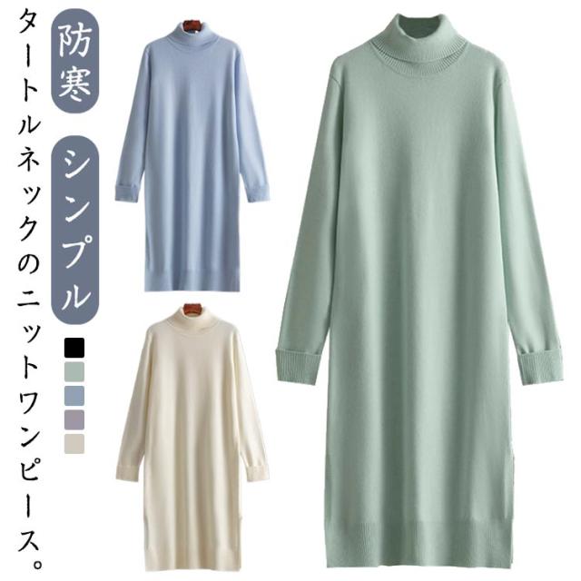 ニットワンピース タートルネック 秋冬 タートルニット タートルネック ワンピース スリット ニットワンピ ミディアム丈 長袖 防寒 保温 ハイネックワンピース シンプル 無地