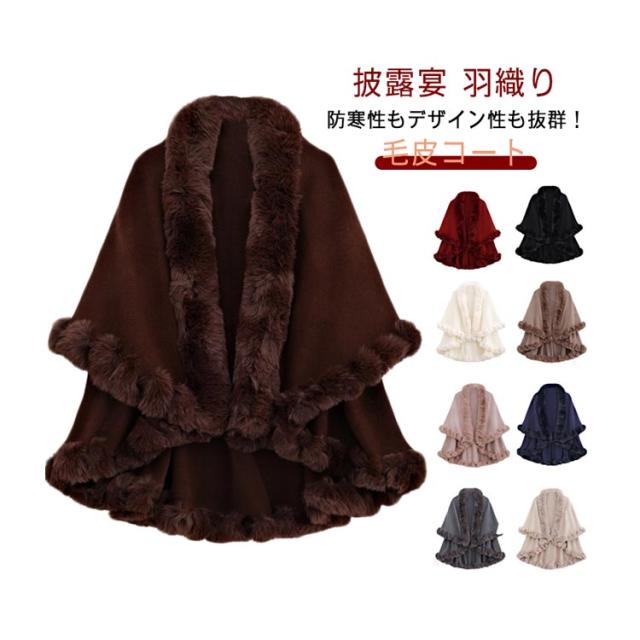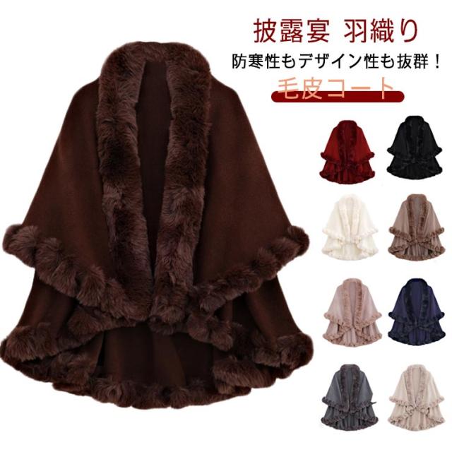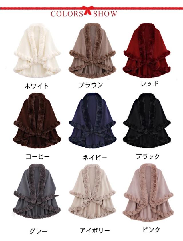 フェイクファー かわいい 厚手 レディース アウター 二次会 体型カバー 毛皮コート ファーポンチョ 大人可愛い 前開き ポンチョ ふわふわ ケープ パーティ コート 結婚式 マント ポンチョ 披露宴 羽織り コート ギフト プレゼント