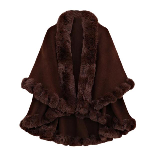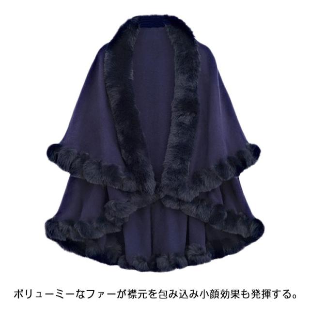 | 防寒性もデザイン性も抜群!今季見逃がせないもこもこマントが登場! 優雅なシルエットを際立たせるリュクスなフレアーにレディ気分もMAX♪ ボリューミーなファーが襟元を包み込み小顔効果も発揮する。 どんなコーデもワンランク上の気品を与える大人エレガント色。 ふんわり女性らしいシルエットが大人のエレガントを演出。 ふんわりと柔らかに羽織るケープは、ドルマン袖のインナーなどコートには合わせにくいお洋服にも合わせやすく、体型も選ばない、全ての女性に似合う優れものです。 | |