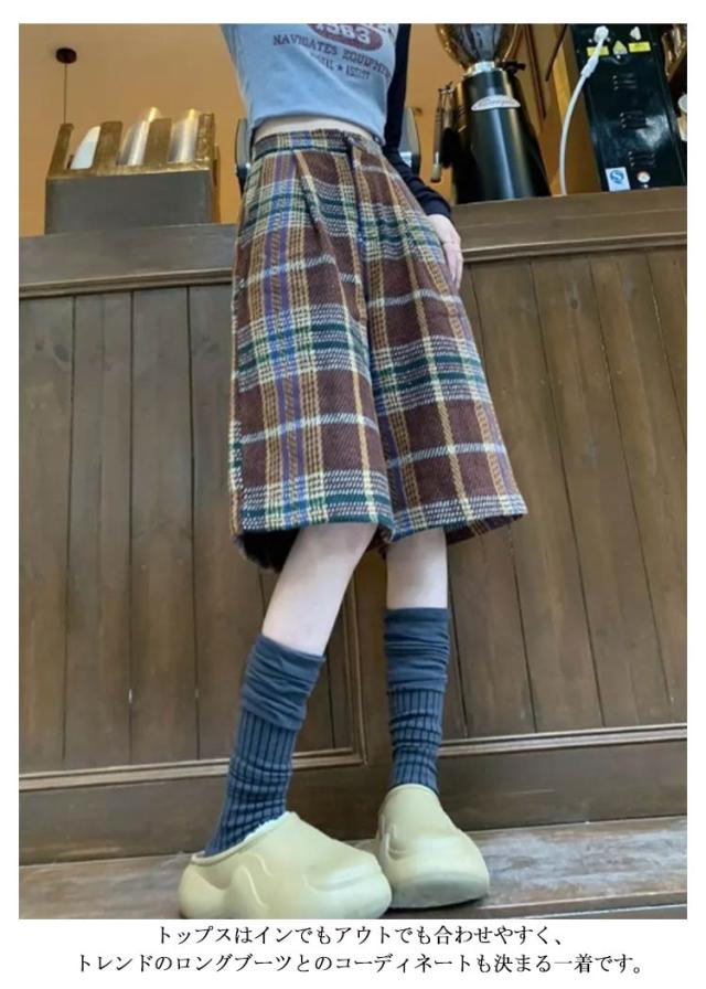 レディース 半ズボン 厚手 チェック柄 五分丈 暖かい 無地 短パン 春 シンプル ショーパン ワイドパンツ ハーフパンツ 防寒 膝丈 ショートパンツ 上品 きれいめ 秋冬 ウールタッチ 秋 冬 カジュアル 体型カバー ゆったり 大きいサイズ