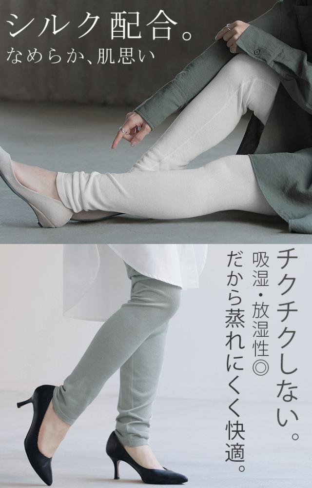 レギンス 腹巻き シルク 混 スパッツ 下着 レギパン タイツ ニット 腹巻 ニットパンツ ロング インナー パンツ 大きいサイズ ボトムス レディース レイヤード 重ね 長い ストレッチ 無地 肌隠し 防寒 きれいめ カジュアル 黒 白 秋 冬 HUG.U 秋新作