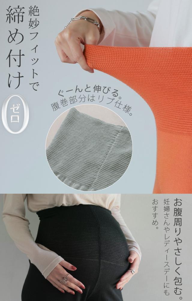 腹巻を着けているかのようにお腹周りまで暖かいレギンスパンツです。