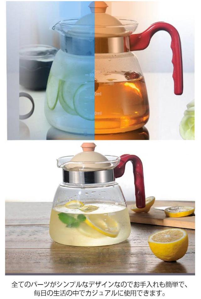 麦茶ポット ガラスケトル ティーポット 直火 1000ml 透明 耐熱ガラスポット 直火電気ケトル対応 耐熱ガラス ガラスピッチャー ピッチャー 茶こし一体型蓋 紅茶 ガラス お茶 ホウケイ酸ガラス 急須 おしゃれ ガラス製 シンプル ギフト プレゼント