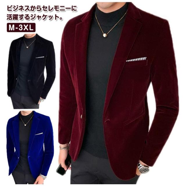 秋 ビジネス 厚手 一つボタン 冬 ベロアジャケット アウター ジャケット メンズジャケット テーラード スーツ テーラードジャケット ベロア カジュアル テーラードジャケット スリム 細身 上品 光沢感 ドレススーツ パーティースーツ 30代 40代 50代 大きいサイズ