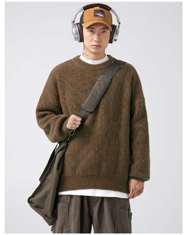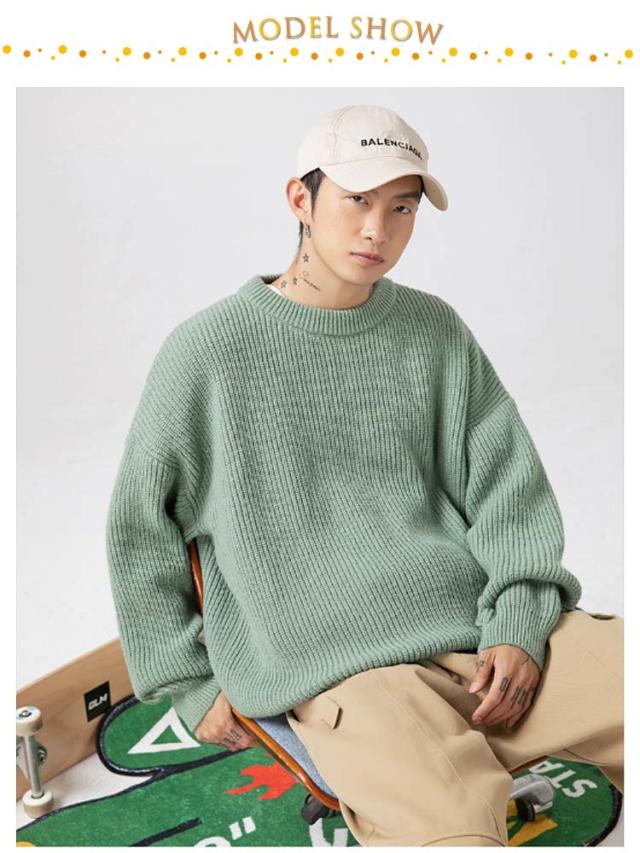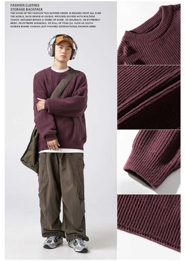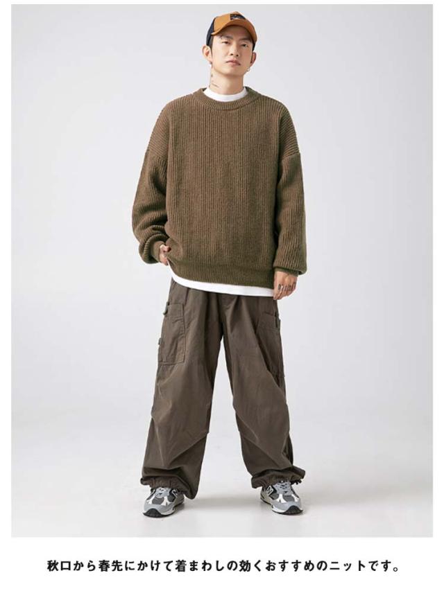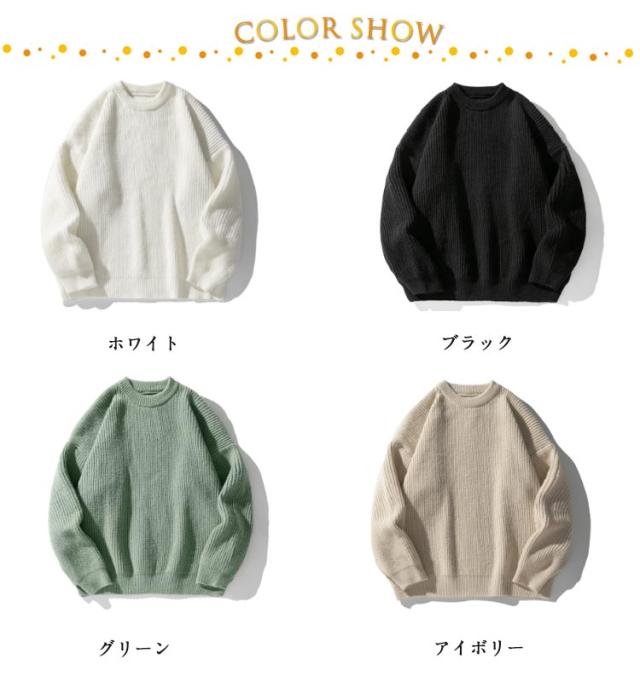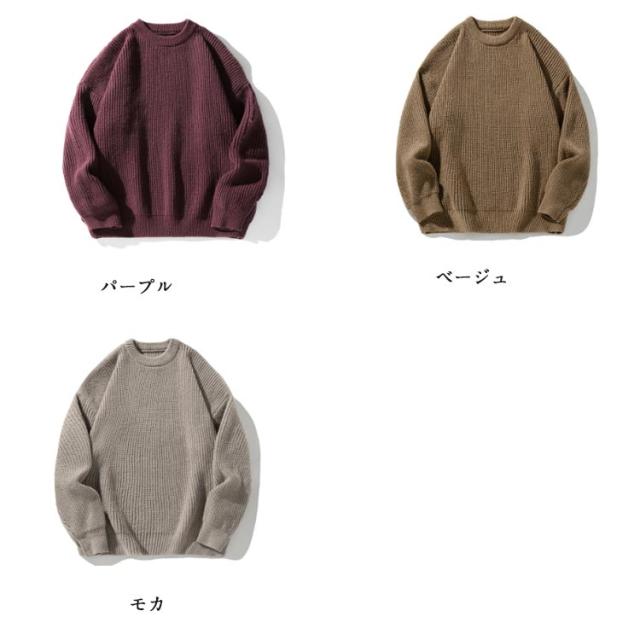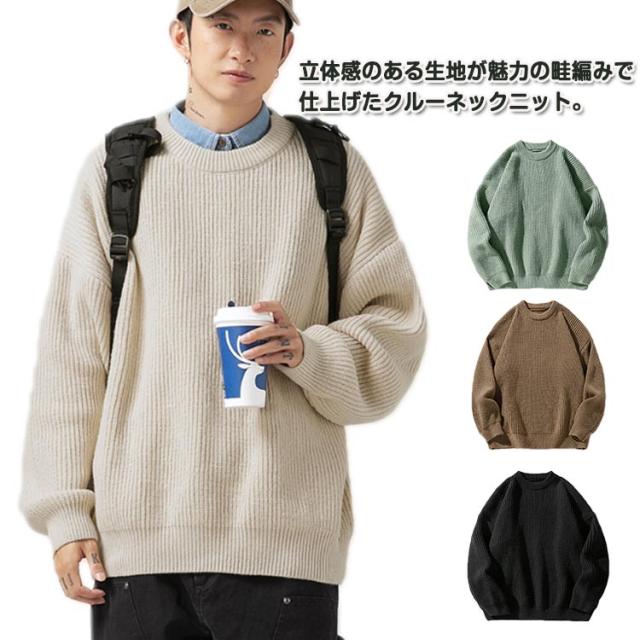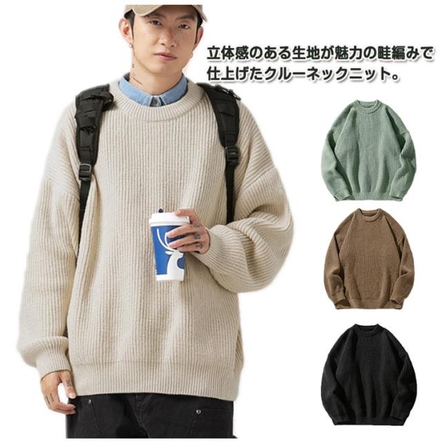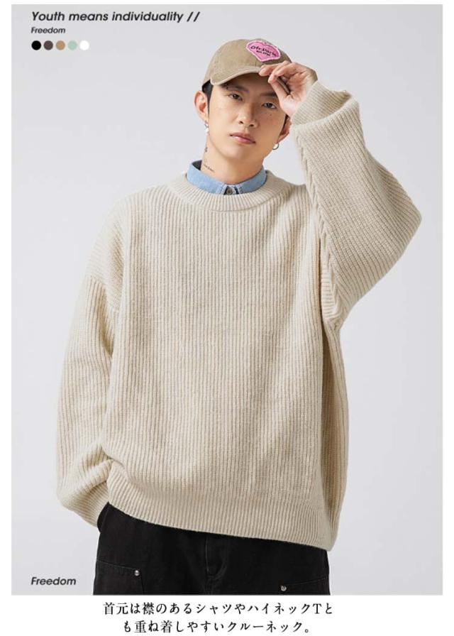 プルオーバー 冬 ニット リブ セーター ゆったり 厚手 無地 ニットトップス ニットセーター 防寒 リブ編み 丸首 畦編み メンズ 暖かい オーバーサイズ 秋 男性 カジュアル 韓国風 ストリート 通学 通勤 大きいサイズ リブ シンプル