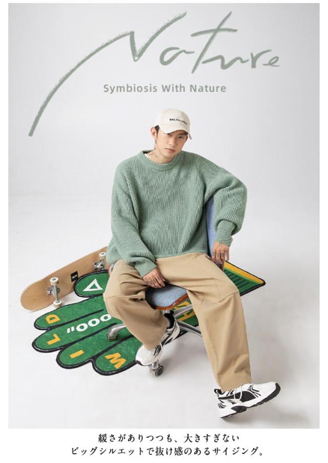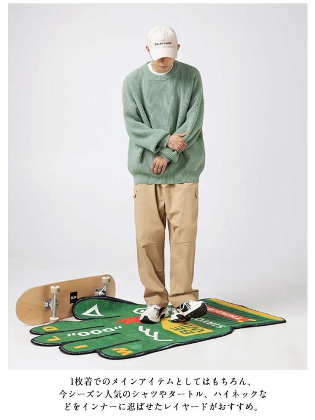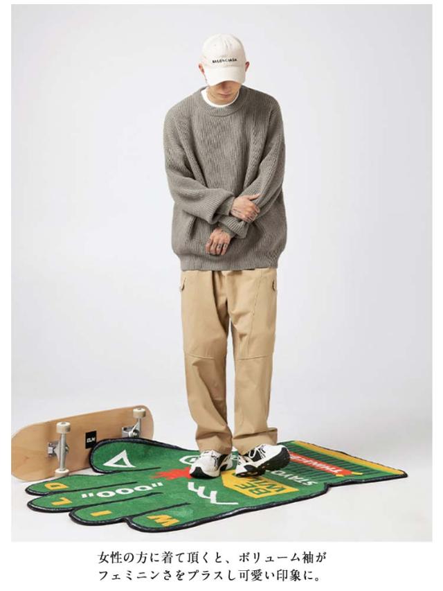 | 立体感のある生地が魅力の畦編みで仕上げたクルーネックニット。 緩さがありつつも、大きすぎないビッグシルエットで抜け感のあるサイジング。 ゆったりとした絶妙なルーズさで、取り入れるだけでトレンド感のあるコーデが完成します。 首元は襟のあるシャツやハイネックTとも重ね着しやすいクルーネック。 1枚着でのメインアイテムとしてはもちろん、今シーズン人気のシャツやタートル、ハイネックなどをインナーに忍ばせたレイヤードがおすすめ。 秋口から春先にかけて着まわしの効くおすすめのニットです。 女性の方に着て頂くと、ボリューム袖がフェミニンさをプラスし可愛い印象に。 | |