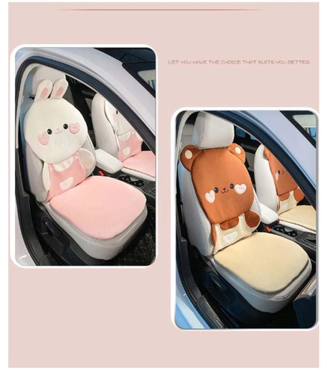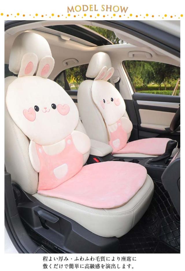 カーシートクッション かわいい カーシートカバー ウサギ 防寒 カーシートカバー 兎柄 軽自動車 ふわふわ クマ柄 短毛 座席シート シートカバー シートクッション 秋冬 あたっか 車 クマさん 車座布団 7点セット 汎用 運転席 助手席 後部座席