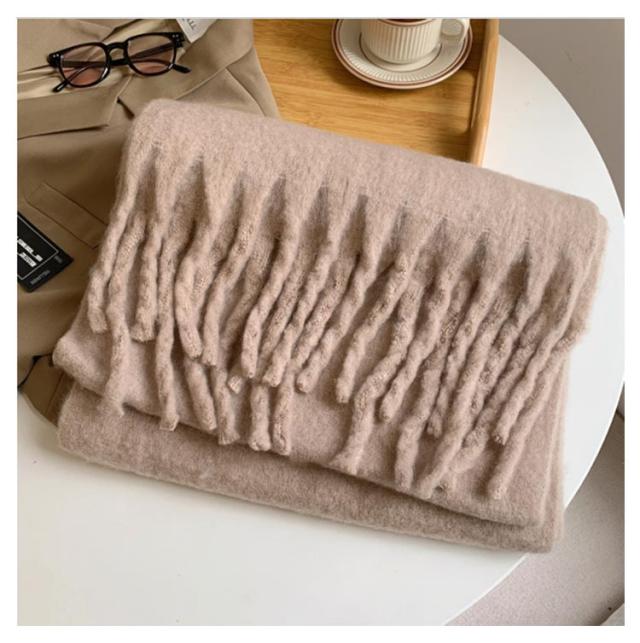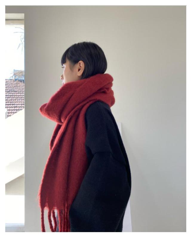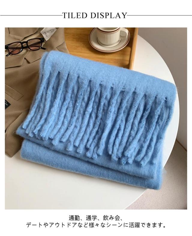| 寒い季節の防寒対策に欲しいアイテム!存在感抜群の大判サイズマフラーです。 肉厚で保温性が高く、寒さをしっかりと防ぎ、防寒効果の高い冬のマストアイテムです。 首元を暖かく包み込み、顔を少し覆うようにぐるっと巻くとかわいく小顔効果も。 十分な幅と長さがあり、ぐるぐるっと首に巻くのはもちろん、肩に掛けてエレガントにショール使いもオススメ。 通勤、通学、飲み会、デートやアウトドアなど様々なシーンに活躍できます。 | |